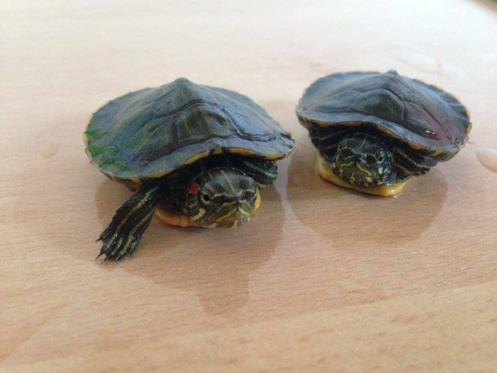 Die beiden Wasserschildkröten Berta und Berto sind gerade einmal so groß wie eine Münze. Wir wünschen uns für die beiden eine artgerechte Unterbringung in einer Familie mit Erfahrung.