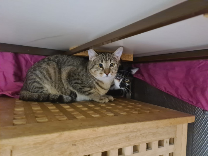 Ivy zeigt sich sehr ängstlich und zurückhaltend. Sie verkriecht sich immer in den letzten Ecken in den Kratzbäumen.
