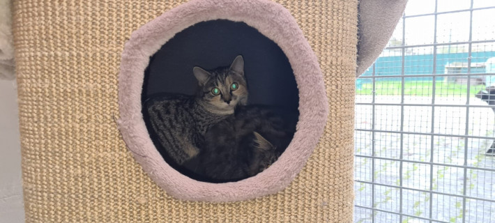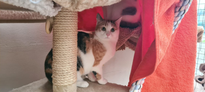 Gala ist eine sehr scheue und ängstliche Katze. Betritt man das Katzenzimmer, so ist sie leider direkt versteckt und für die Besucher quasi unsichtbar. Sie ist keinesfalls von sich aus auf Konfrontation, möchte man aber gezielt etwas von ihr haben, so reagiert sie mit einer Abwehrhaltung und dann wird auch ordentlich gefaucht und gespuckt. Gala wurde draußen geboren, daher kennt sie leider keinen Menschenkontakt. Menschen sind für sie etwas unheimliches und beängstigendes. Gala wünscht sich Menschen, die Zeit und Geduld aufbringen. Mit anderen Katzen versteht sie sich gut, daher wäre sie auch gut als Zweitkatze geeignet. Vielleicht wäre es für sie auch von Vorteil, wenn eine zugängliche Katze ihr zeigen kann wie unbeschwert das Leben mit Menschen sein kann.