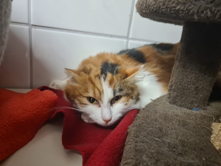Konfetti kam am 01.12.2020 als Fundkatze zu uns ins Tierheim. Ihr Gesundheitszustand war zu Beginn leider nicht besonders gut, sodass sie zunächst einmal unsere Krankenstation beziehen musste.