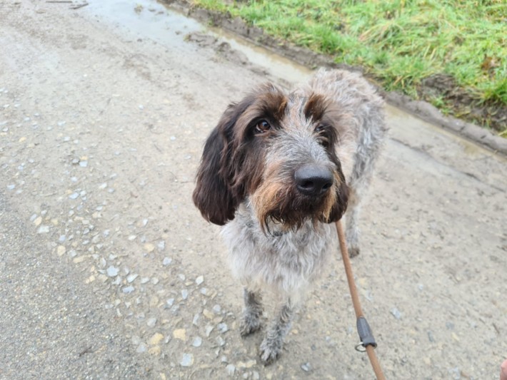 Unsere Faun ( Griffon de bleu de gascogne) kam am 21.08.2021 zu uns ins Tierheim.