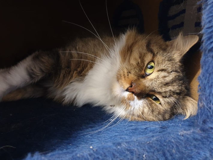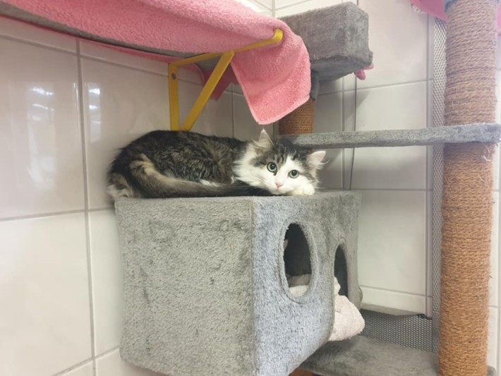 Unsere langhaarige Schönheit Esther kam als Fundtier mit drei weiteren Katzen zu uns ins Tierheim. Sie wurde bei uns tierärztlich durchgecheckt, gechipt und versorgt und ist nun auf der Suche nach ihrem neuen Zuhause, welches nach einer gewissen Eingewöhnungszeit über eine Möglichkeit zum Freigang verfügen sollte. Esther konnte in ihrem bisherigen Leben leider keine Erfahrung im Menschenkontakt sammeln. Daher ist sie dem Menschen gegenüber sehr misstrauisch und scheu. Betritt man das Katzenzimmer, so verschwindet sie sofort in einem Kratzbaum und hält den Menschen mit einem kräftigen Fauchen auf Distanz.