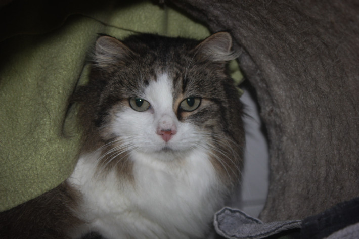 Die hübsche Nikita kam als Fundtier zu uns ins Tierheim. Sie wurde bei uns tierärztlich durchgecheckt, kastriert, gechipt und ist nun auf der Suche nach ihrem neuen Zuhause, welches nach einer gewissen Eingewöhnungszeit über eine Möglichkeit zum Freigang verfügen sollte, denn Nikita wurde draußen gefunden und liegt auch im Tierheim sehr gerne im Außenbereich. Unsere hübsche Maus ist in unserem Katzenzimmer praktisch unsichtbar. Sie liegt immer in ihrem Stammplätzchen und beobachten das Geschehen auf Distanz. Charakterlich ist sie sehr zurückhaltend und noch unsicher im Menschenkontakt. Unsere Langhaarige Schönheit muss erst einmal Vertrauen zu ihren Menschen aufbauen. Sie ist unsicher, aber keinesfalls bösartig gegenüber dem Menschen. Auch die Eingangsuntersuchung, sowie Entwurmung, Entflohung und die tierärztlichen Untersuchungen halt sie gut über sich ergehen lassen und war kooperativ. Mit Artgenossen versteht sie sich gut. Also könnte sie auch problemlos als Zweitkatze gehalten werden.