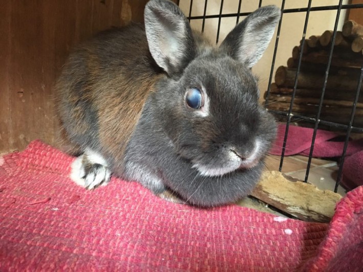 Bella wurde gefunden und zu uns gebracht. Da sie nicht vermisst wird, suchen wir ein neues Zuhause für die süße. Bella hat einen etwas erhöhten Druck auf den Augen, was sie auch erblinden ließ. Woher das kommt, kann man nicht genau sagen, eventuell durch eine frühere Erkrankung der Augen, die nie behandelt wurde. Dennoch kann Bella Umrisse erkennen und stößt so gut wie nie irgendwo an. Wirklich viel sehen kann sie nicht mehr, doch sie kommt damit super zurecht. Sie wird in der Kaninchengruppe auch voll mit integriert und keineswegs gemobbt. Sie fühlt sich pudelwohl und genießt ihre sozialen Kontakte und den Freilauf. Das wünschen wir ihr auch für die Zukunft in ihrem neuen Zuhause. Artgenossen und viel Platz. 🙂