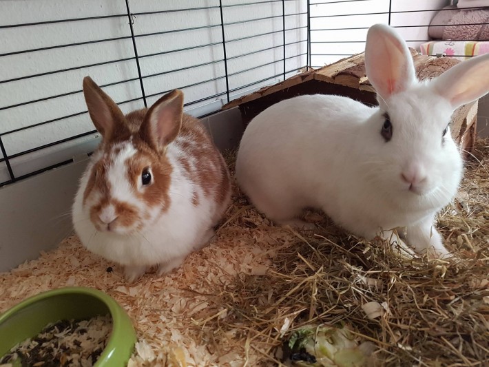 Sie wurden vom Tierarzt durchgecheckt und geimpft und können nun in ihr neues Zuhause ziehen. Tessa & Tessi sind sehr interessierte Kaninchen, die gerne auch mal herkommen um an der Hand zu schnüffeln. Dennoch sind Kaninchen keine Kuscheltiere und sie mögen es auch nicht herum getragen zu werden. Man kann Kaninchen sehr zahm bekommen, wenn man sich immer wieder ins Gehege setzt und mit Leckereien lockt. Die beiden möchten Haken schlagen, buddeln und einfach alles machen, was ein Kaninchenherz begehrt. Gerne können die beiden auch zu bereits vorhandenen Kaninchen dazu.