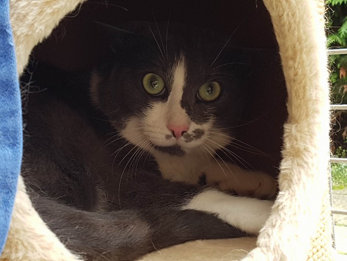 Andere Katzen braucht Jimmy nicht, er ist eher der Einzelgänger Typ. Aber Ärger sucht er definitiv nicht, im Gegenteil.