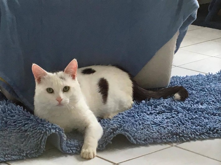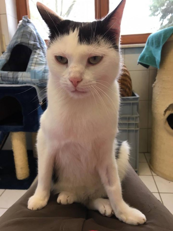 Spatzle stammt aus einem Haushalt, der Animal Hoarding mit 70 Katzen betrieben hat. Sie wurden alle gerettet und wir haben 10 davon übernommen. Einer von ihnen ist Spatzle.