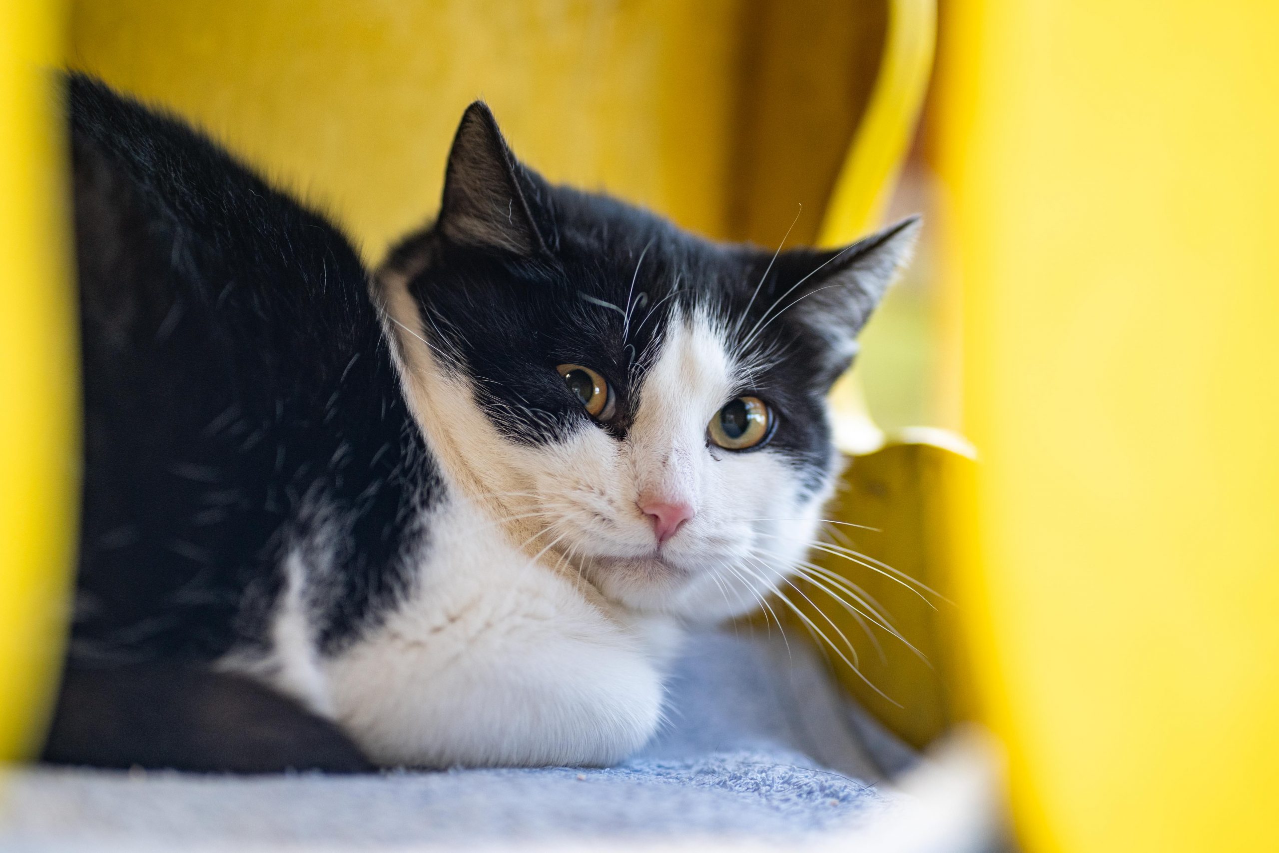 Pimpi stammt aus einer Katzenkolonie. In der Hoffnung, dass der junge Mann doch noch die Scheu vorm Menschen verliert, wurde er zu uns gebracht. Derzeit hält er viel Abstand von uns.