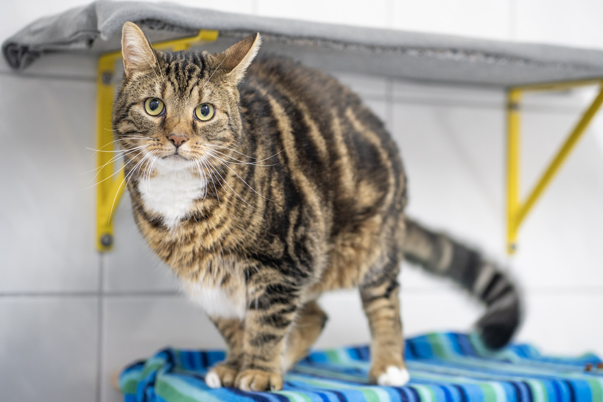 An seinem Gewicht sollte langsam gearbeitet werden. Katzen dürfen keinesfalls zu schnell abnehmen, da das die Leber schädigen kann. Bewegung und kontrollierte Fütterungen sind hier wichtig, dann wird er auch sein Fell wieder allein pflegen können.