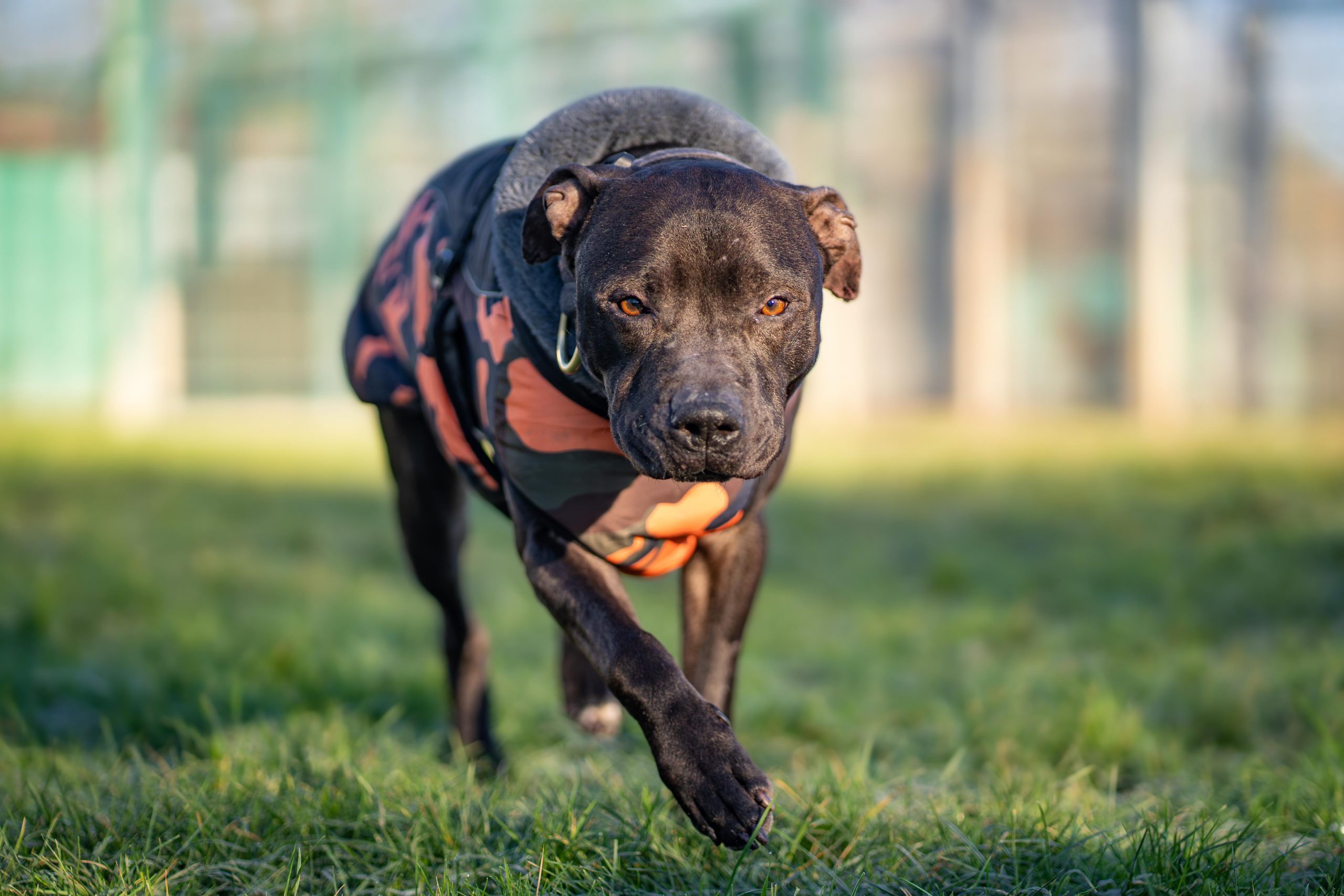 Wambo hat als American Staffordshire-Terrier, und damit ein Listenhund in Baden-Württemberg, noch keinen Wesenstest.