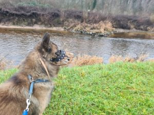 Wolfi ist ein relativ ernsthafter Typ. Er ist sets wachsam und braucht ganz klare Struktur. Wer ihn führen will, muss sehr klar sein und solide Führungsqualitäten haben. Bei Wischi-waschi-Typen würde Wolfi sich nicht einmal anleinen lassen. Was Wolfi sehr schön zeigt, ist sein Wille zu lernen und sich bei Akzepetanz des Menschen stolz zu zeigen mit dem was er kann (Grundgehorsam).
